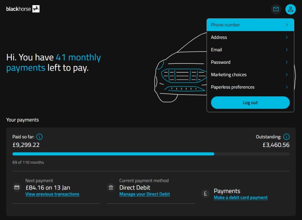 1. Go to https://customerportal.blackhorse.co.uk/ and select 'Log in'