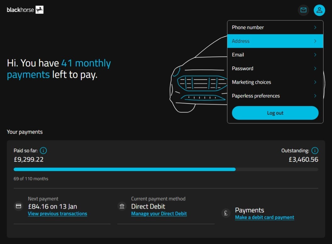 1. Go to https://customerportal.blackhorse.co.uk/ and select 'Log in'